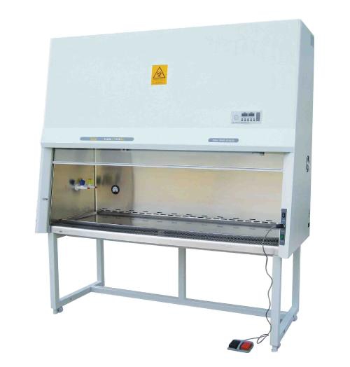 6、根據送風又分為水平送風與垂直送風。生物安全柜是為操作原代培養物、菌毒株以及診斷性標本等具有感染性的實驗材料時,用來保護操作者本人、實驗室環境以及實驗材料,使其避免暴露于上述操作過程中可能產生的感染性氣溶膠和濺出物而設計的。 普通超凈工作臺(workbench)結構(Structure)特點  1.外殼采用優質冷軋鋼(Steel)板折彎焊接而成,表面(biǎo miàn)經防銹處理(chǔ lǐ)后實施烤漆處理, 美觀、耐用。  2.初效過濾(filtration)器設置在工作臺的頂/后部,其濾料采用優質無紡布(Non-woven fabric)(cloth)制作而成,具有**的透氣性能與過濾性能。  3.高效過濾器(作用:過濾雜質等)則由長纖維過濾紙與外框構成,具有初阻力小、容塵量大、過濾效率(efficiency)高(99.99%)、使用壽命長,便于更換(change)等特點。  4.利用工作臺控制器可以調節風機轉速,以獲得不同的風量。照明燈、殺菌燈可單獨控制。  5.工作臺采用紫外燈實現殺菌功能,該紫外燈能輻射出波長為2537A的強烈紫外線(Ultraviolet rays),不僅能殺滅微生物活細胞,而且對于抗熱性很強的芽孢(如枯草桿菌芽孢)以及其它細菌芽孢、霉菌(mold)芽孢等均能起到殺滅作用。此外,對于噬菌體與病毒(Virus)也有著迅速破壞的作用。 生物(醫藥)超凈工作臺結構特點  1.生物操作配置(dispose):工作臺底部配有排污接口,排風處設置>高效過濾器。 2.全循環式氣流設計,當工作區大量補充新風時,部分回風可從頂部排風口排出。 3.工作臺前后配有彈簧式上下移門,即使定位,靈活方便。 4.氣幕式隔離設計,防止(fáng zhǐ)內外交叉污染。 5.配以2KW備用插座,為操作者提供便利。  6.采用低噪音高效離心風機,具有工作時噪音低、震動小,可無級調速等優點(advantage)。 7.生物潔凈工作臺其獨特的回風設計可以滿足制藥、制劑等行業嚴格的塵埃粒子、菌落數的潔凈要求;配有彈簧式上下移動門或配重移動門,定位靈活方便。 8.垂直工作臺臺面(tái miàn)和箱體分體式設計,將震動影響降到**低。  9.整體箱體制作采用優質冷扎鋼板,表面靜電噴塑(不銹鋼),工作臺面采用砂光不銹鋼板制作。  10.風速控制在0.42m/s左右.  11.采用初高效兩級過濾,初效過濾效率為G4,高效過濾效率,凈化級別100級(美G聯邦標準209E) 12.氣流方向:自上往下垂直送風。  13.產品均按美G聯邦標準209E逐臺檢驗后出廠,可靠性高。 超凈工作臺特點及優勢     超凈工作臺以其開放式臺面、操作方便、潔凈度可達百級的優勢廣泛應用于醫療、科研(Scientific research)、光電等產業